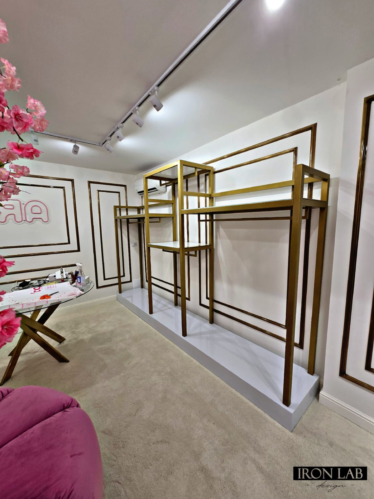 Scaffale per abbigliamento in ferro.