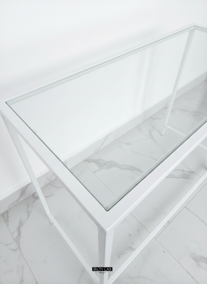 Sistema di Appoggio Integrato: Come si nota nel dettaglio tecnico della foto, la struttura presenta dei supporti interni progettati specificamente per incastrare il ripiano in plexiglass alla perfezione, mantenendolo a filo con il telaio per una pulizia estetica impeccabile.