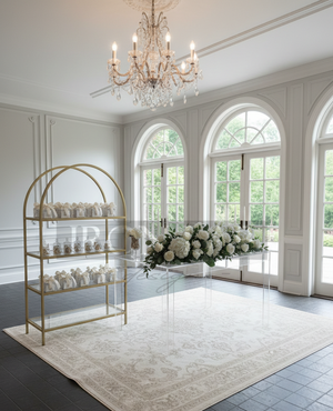 Verniciati a Polveri EpossidicheQuesto raffinato espositore è il risultato di un sapiente lavoro artigianale in ferro, progettato per chi cerca un equilibrio perfetto tra design contemporaneo e maestria classica. La sua struttura, caratterizzata da un elegante profilo a doppio arco, non è solo un supporto, ma una vera e propria cornice scenografica pensata per esaltare ogni dettaglio dei tuoi eventi più preziosi.